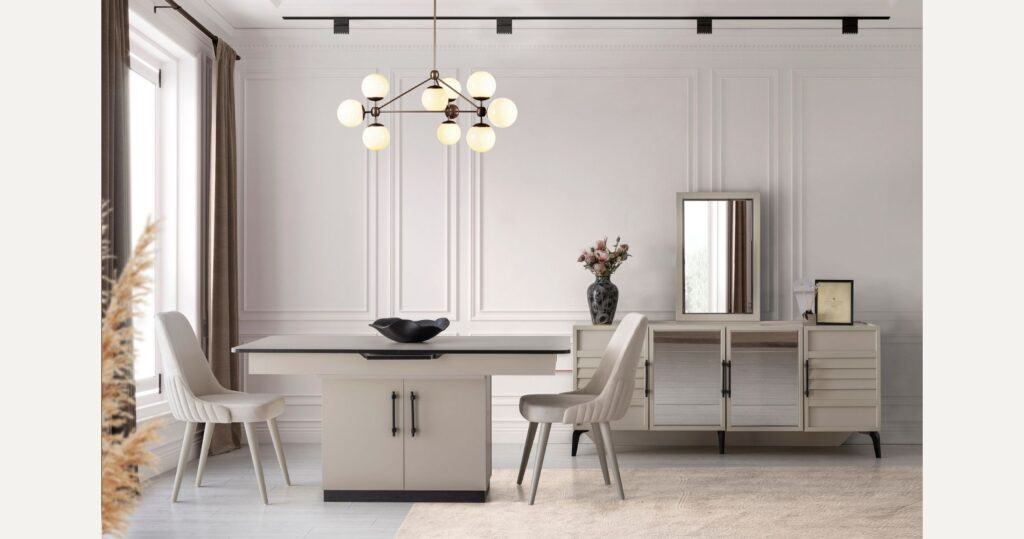 Evart Mobilya'nın yemek odası takımları, sofistike tasarımı ve dayanıklı yapısıyla yaşam alanlarınıza değer katıyor. Şıklığı ve kullanışlılığı bir araya getiren bu özel koleksiyon, keyifli yemek deneyimlerine eşlik ediyor.